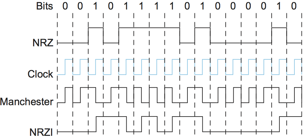 Merging the clock with the signal by transmition the exclisive OR of the NRZ and clock. It doubles the rate at which signal transistions are made on.